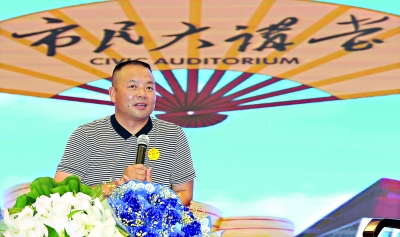 昨日,村支书魏剑英做客市民大讲堂,讲述创业成功后不忘初心,传递爱心 记者刘斌