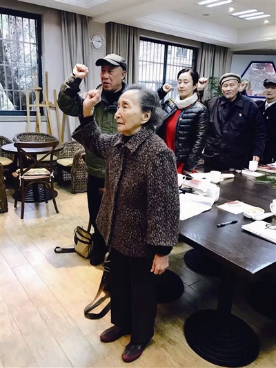 “我志愿加入中国共产党,拥护党的纲领,遵守党的章程……”昨天下午,在西湖区翠苑一区社区工作站一楼会议室,达奶奶高举右手,向着鲜艳的党旗光荣宣誓。