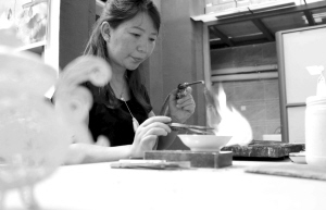 虽然是独家配方,道安也愿意毫无保留地传授。工作室里有一位“90后”学员杨丽,就在做焊接,操作台上放着几个烧毁的银花丝,“焊接是一道靠经验完成的步骤,没关系,慢慢来。”23岁的杨丽已经学习焊接近3年,“当时真的没想到这么漂亮的饰品是手工制作的。”杨丽说,知道是纯手工制作后,自己便下定决心要学习这一传统技艺。