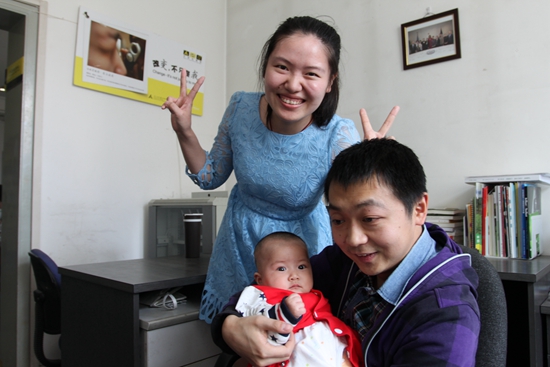 蔡聪与同样患有视力障碍的妻子和女儿的合影。