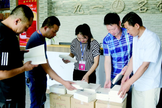 汶上县爱心联盟的工作人员正准备把郑茂霞捐赠的图书送往农村学校。