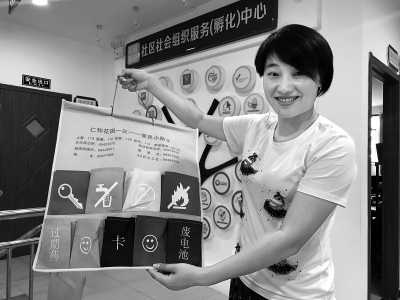 张梅所在的80后义工社设计的便民服务袋,受到社区老人们的欢迎。本报记者 王海燕摄