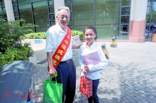 “王爷爷,我终于见到你了!”22岁的茂名女孩赖燕珍与79岁的广州恩人王颂汤紧紧握住了对方的手。今年6月24日,广州日报独家报道了两人的故事:赖燕珍在2012年曾受过王颂汤所在的广东恤孤助学会的资助,后来他们同时入围全国道德模范广东省候选人。广州日报记者连线后,赖燕珍发出了一篇《给广东公益恤孤助学促进会的一封信》,感动许多网友。听说燕珍在做微商,王颂汤的儿子还特意买了一个大屏手机送给她。7月22日,两人同时获评省道德模范,两位素未谋面的有缘人终于相见。