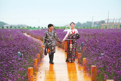藏族小伙牵手新娘,在周祖圣景公园拍摄婚纱照。本报通讯员刘万隆
