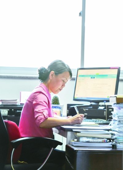 冯翠玲在天津大学药学院办公室里工作。新华社记者 白禹摄