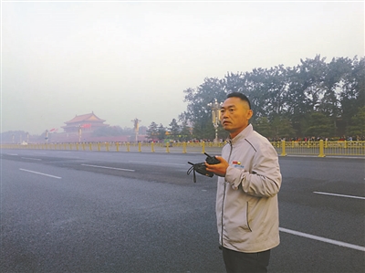 昨天早上5点,天还没亮,刘宇就来到天安门广场了。这是他每天的第一项任务——在升旗前保障广场的干净整洁。他组织50名环卫工人,拿着背篓、扫帚,在游客观看升旗的区域来回穿梭,随时处理游人扔掉的垃圾,“相当于50个移动果皮箱”,刘宇形象地说。