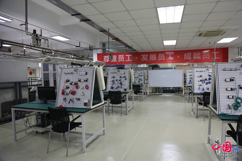 为了降低成本,工作室的教学设备均为自制。在不断的教学摸索中,工作室 独创了“2+1”培训课程,主要含义为:在工作室脱产培训2个月,其中理论学习与实际操作各一个月然后回到车间1个月的时间来学以致用,三个月为一期。培训主要针对的是电子,机械,机电,自动化等设备相关人员。培养方式采用双导师制,培训期间由刘源等大师亲自指导,回到车间由机电设备工程师进行工作实践指导,实现脱产培训与工作实践的完美结合,通过一至两年的学习从而实现一年达到同等高工水平,两年达到同等技师水平的理想目标。 中国网 杨楠 摄影报道