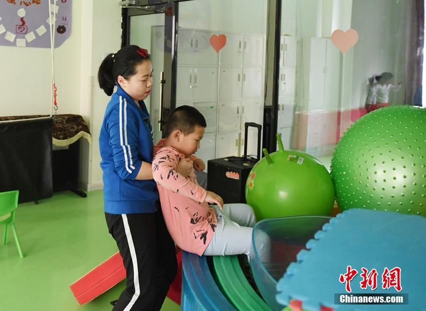 一个孩子跑到玩具区不肯出来,沈浩宇把这个“小调皮”抱了出来。 张瑶 摄