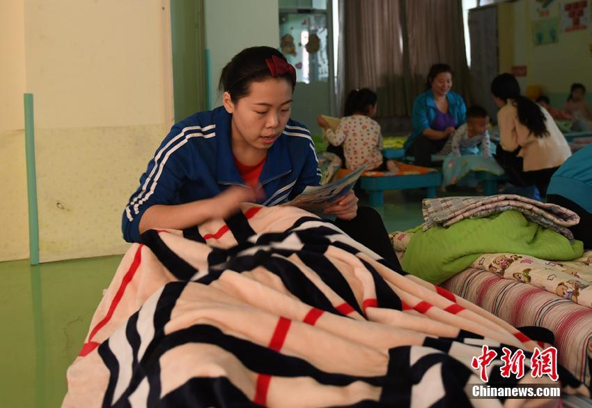 沈浩宇每天中午都要拍孩子睡觉,一边拍一边给孩子讲故事。 张瑶 摄