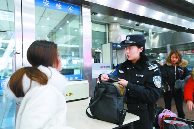 小孟的岗位主要在南广场进站口,负责处理安检中遇到的各种突发情况。“我们在工作中遇到最多的就是旅客不理解,”小孟说,昨天有一家四口在火车站安检被查出带了一把水果刀,结果旅客死活不愿意拿出来,态度极其不耐烦。经过说服教育,旅客总算把刀子扔了出来,但是仍然在嘴上不停地埋怨着安检员和民警。