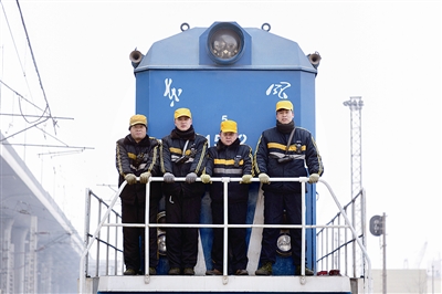 “连挂”、“停车”、“试拉”、“好了”,一连串命令结束,调车机便稳稳地和列车车辆链挂到一起。指挥调车的就是青岛火车站客调调车长张凯。