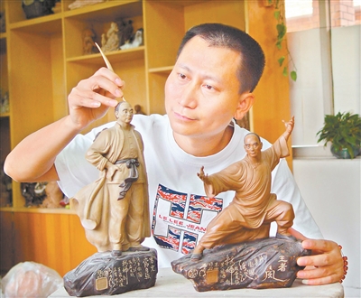 而到了国家级层面就更加严格了。“首先评委会要求大家选送三个代表作去参评,在实操环节开始之前,让大家现场抽签,从三个代表作品抽出一个现场制作。”黄志伟称,他选送了《悠闲老子》《海阔天空任我行》《乐济公》三件代表作参评。本来是很想做能随意发挥的作品《济公》,但后来抽到了《悠闲老子》。在三个小时的时间里,他非常熟练地完成了现场实操环节,所做出的作品也得到评委的认可。