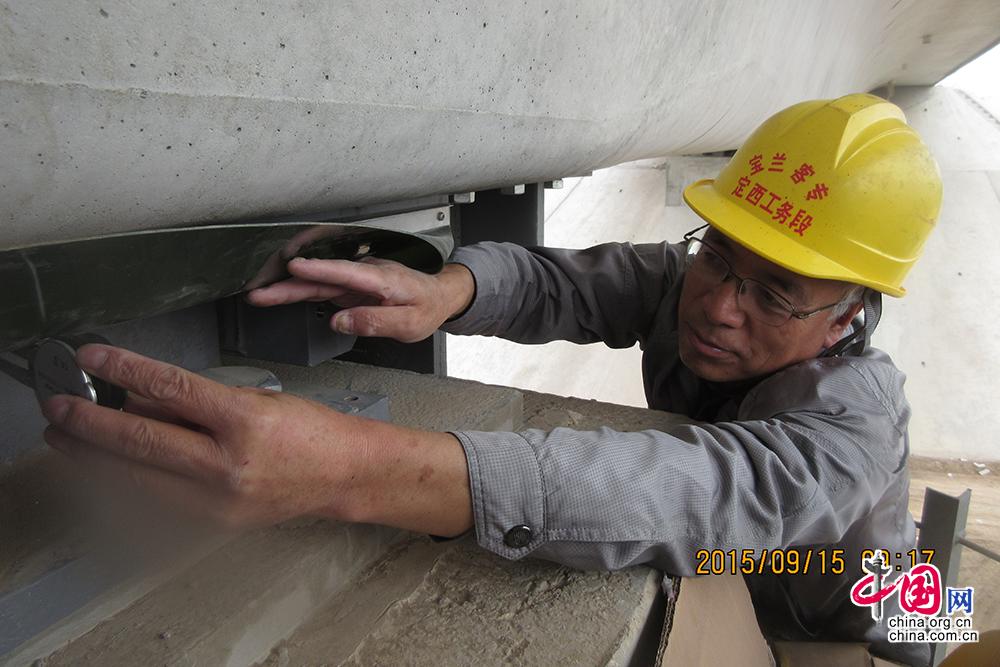 陈忠祥在检测宝兰高铁桥梁支座 杨 军 摄