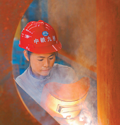 毕业于武汉铁路桥梁职业学院的王中美还记得第一次去电焊实习的情形。灼热的钢条、飞溅的火花、呛人的气味,晚上回去时眼睛已经肿成一条缝。同是焊工的父亲担心女儿干不了这活,但王中美却坚持试一试,这一试就是17年。“我们焊接的不只是一条焊缝,而是对生命的责任。”王中美说。