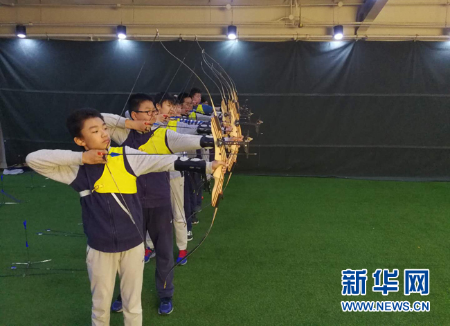 十一学校一分校体育选修模块丰富多彩,图为射箭课程
