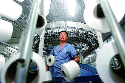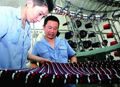 在一次全国纺织行业纬编工职业技能竞赛中,姜正涛赢得了“全国技术能手”荣誉称号。“在比赛的时候,需要接上5条断纱,一般水平的参赛选手需要30秒左右,也就是平均每条纱线需要6秒钟,我全部接完只用了20秒左右。”姜正涛很是自豪。