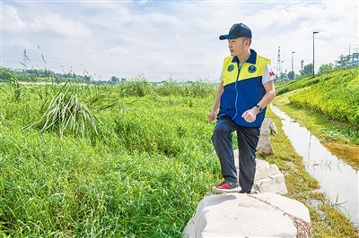 徐立强每天早上在河面湿地巡视鸟类。