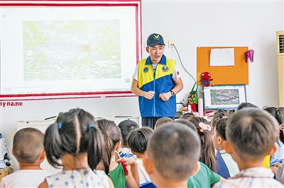 “两只黄鹂鸣翠柳,一行白鹭上青天。黄鹂是一种鸣禽,叫声很好听是不是?”城阳区东方嘉禾幼儿园的课堂上,正在进行一堂图文并茂的鸟类保护课,上课的“老师”不是别人,正是城阳区动物保护协会会长徐立强。作为中国野生动植物保护协会理事、中国野生动植物保护协会志愿者委员会委员,徐立强除了在白沙河、墨水河及入海口巡视保护珍稀鸟类之外,这样的动植物保护宣讲,他每年要讲50余场。