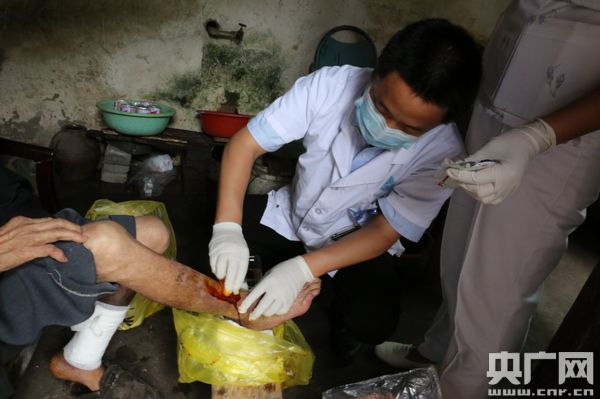 “在这之前,我们没接触过也不知道有这么一批老人健在,但是当我们看到了他们的惨状后,感到特别地震惊。”万少华回忆道。从那以后,无论刮风下雨,山路崎岖,万少华都会定时地带领他的团队跋山涉水地去为这些“烂脚病”老人免费医治换药,这一干就是八年。