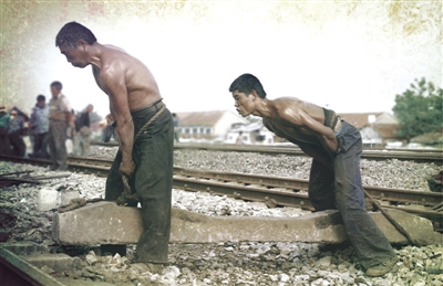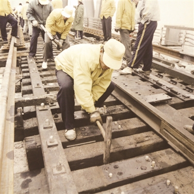“线路上全是人,一眼望不到头。三伏天,几百斤的钢轨肩扛手拉,一干就是一整天。如果中暑晕倒,就抬到旁边休息一会儿,起来接着干。”李尚奎回忆。