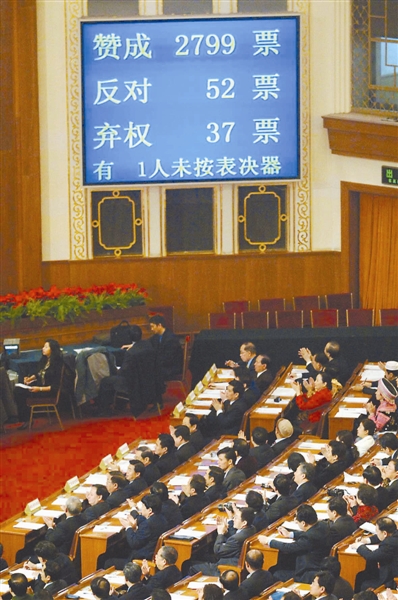 2007年3月16日,十届全国人大五次会议上,物权法高票通过。
