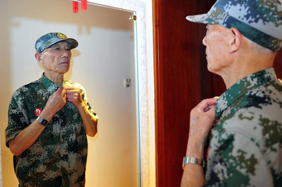 李国发每次出门前都会整理军容。记者 彭年 摄