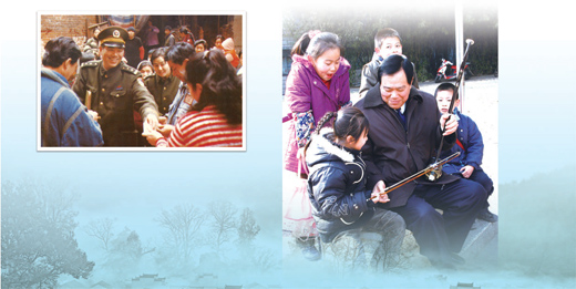左图:上世纪90年代,邱娥国热情走访群众。