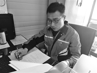 每天他总是最早来的中心,自己先在停车场转一圈,看看车辆是否都停好,外观是否完好,有无油液渗漏,对车辆做到静态检查。开完班前会,他就来到基地门口,对出厂作业的车辆再进行灯光、刹车、作业吸口等各种车辆动态的检查,保证车辆各项安全后,车辆才出厂上段进行作业。