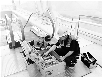 在我们生活工作着的繁华都市里,有这样两名几乎全年无休、24小时待命的电梯守护者,同事们都尊称他们为“隐形英雄”,他们就是北京房地天宇特种设备安装工程有公司(以下简称房地天宇公司)电梯维修工孟卫信和孙有全,负责国家游泳中心(水立方)电梯的维修保养。他们经常身处在电梯井道、底坑等不为人知的工作场所,每天与电气设备、机械装置打交道,在一条条“垂直高速路”的背后,守护着水立方成千上万游客的安全。