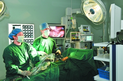 李龙(右)进行微创手术。