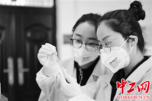 图为8月6日,化验组的姐妹花正在仔细查看天然气样品。黄冰 摄