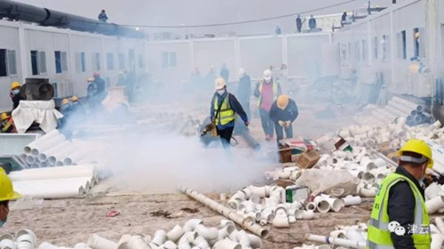 来到现场,看着繁忙紧张的建设场面,救援队员们都觉得压力山大。“物资已经到位,现场都是建筑行业的人员,操作各种机械设备驾轻就熟,但是对于消毒设施的使用却是陌生的,我们不仅要提供消杀,更要把人教会!”