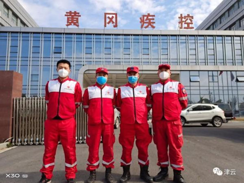 在黄冈期间,救援队在黄冈市英山、罗田、武穴、黄梅、蕲春5个市县开展防疫消杀培训,培训消杀人员70余名。截至2月15日,救援队向黄冈市红十字会移交消毒剂30吨、84消毒液124吨、消毒粉30吨、弥雾机300台、消毒洗手液8928瓶。