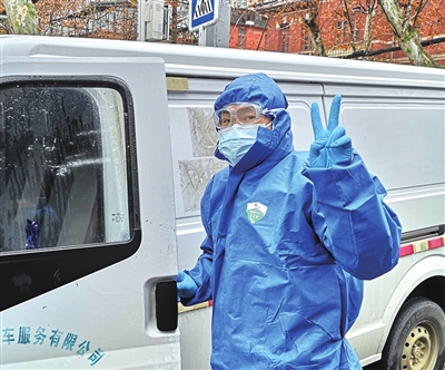 徐金陆清楚地记得自己第一次转运病人时的场景,那天晚上,他要把一个病人从一家民营医院送到方舱医院去。送去的路上,下起了中雨,病人又咳嗽得很厉害,“咳得让你很揪心的那种。”隔着一层铁皮,不断的干咳声从面包车后座传来,初次做转运的徐金陆紧张不已。