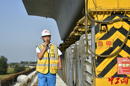 一周之后,郝铎跟着运梁车司机上夜班,他抓住一切机会请教学习。10天后,郝铎就获准进入司机室。
