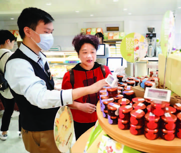 “记得我们筹备开业前,尤老师就帮我们上过几堂培训课。”三阳南货店(江西路店)的“95后”新店长吴帆回忆道,早在两个月前,南京路东拓段四家店面的年轻职工在公司安排下接受了尤珏珍的指导。课上,她一边将自己的服务心得传授给大家,一边将工作时碰到的小故事、麻烦事娓娓道来。“有次国庆放假最后几天,一名从外地来的游客想要买邵万生的糟蟹带回去给父亲吃。但由于时节未到,糟蟹还没上市。面对游客失望的表情,我马上联系了厂家,最后,在厂长的帮助下,这名游客带着糟蟹顺利登上了飞机。”回忆着历年国庆期间的往事,尤珏珍感叹不已。