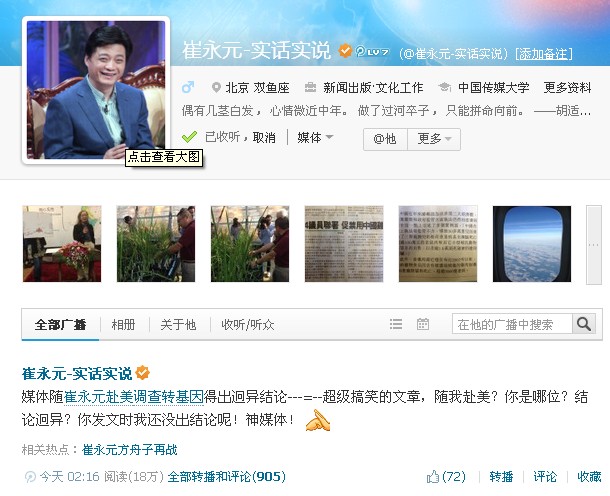 崔永元回应媒体调查转基因结论:超搞笑 你哪位(图)