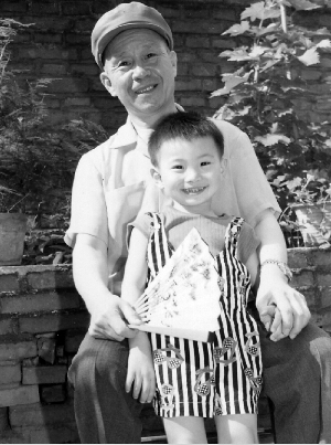 年仅四岁的方旭(前)与爷爷方荣翔在一起,摄于1988年。