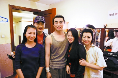 昨晚,金汉虽然伤口还没完全愈合,但他还是如愿登上了《吴王金戈越王剑》首演的舞台。由于该剧是古装戏,化装比较繁琐,演出前在后台化装,化妆师给他戴头套时有点勒到他头部的伤口,让他脸上露出了疼痛的表情,但他还是忍痛戴好头套,盖住头部的绷带。他左肩和手部的伤口还没有拆线,而士兵服装的肩带刚好要压在他的伤口上,即便垫上了纱布,也难免还会让他疼痛,而当人物做动作的时候,更是会拉扯伤口。但这个高大憨厚的小伙子对此都报之一笑,能够如期参加演出,才是让他最欣慰和开心的事情。
