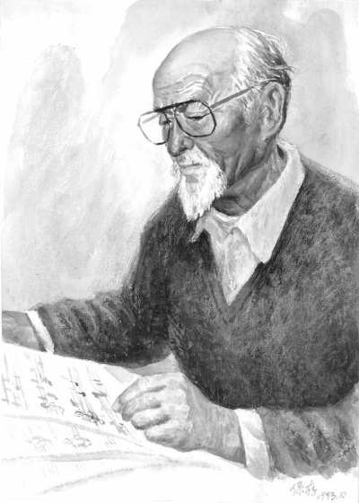 1994年8月,我和好友郭社等人去王洛宾住所看望他。在聊到各自的创作体会时,王洛宾感叹道:“音乐创作是艰苦的劳动,但一旦投入进去又其乐无穷。音乐是宗教,品尝优美的旋律会感到很幸福,令人向往、着迷。”接着他又说:“我接触的画家朋友不多,有的画家也给我画过像,但你给我画的这幅水彩画肖像画得很像,很好,画出了我在创作中专心致志的神态。”