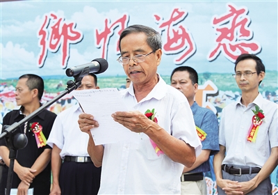 2013年,邓广德在《乡情海恋》影展会上致辞。 吴文生 摄