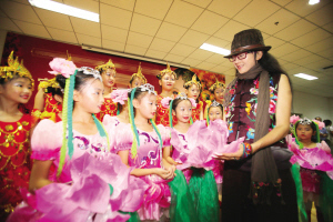 由著名舞蹈家、“孔雀公主”杨丽萍编导的大型原生态歌舞集——《云南映像》,将于9月12日、13日作为第二届西岸·马三立城市舞台戏剧展的开幕大戏在津湾大剧院上演。昨天下午,杨丽萍现身河西区青少年宫,与学习舞蹈的孩子及其家长们做了交流,并接受了记者的采访。