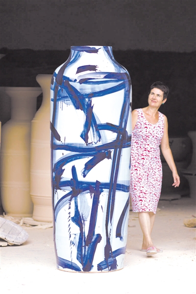 走进安田猛&弗莉斯蒂欧洲当代陶瓷艺术大师联展,就被那庄严的氛围震慑了,整个展厅是那么高雅,让人不敢大声喧哗。这些作品不仅形态高大,而且风格豪爽,挥洒自如,让人感觉很舒服。弗莉斯蒂的作品都很大件,看起来很大气,有一种一看就知道是欧洲人的作品的感觉。尤其是她的近两米高的手绘钴料青花瓷系列的大陶瓷瓶,图案很生活化,仿佛是一气呵成,信手拈来,让人看得很过瘾。