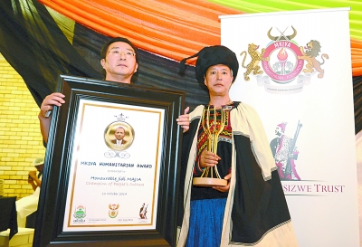 当地时间10月10日,在南非的东开普敦,中国著名诗人吉狄马加荣获“2014姆基瓦人道主义奖”。得知吉狄马加获奖的消息后,本报记者在第一时间采访了吉狄马加。