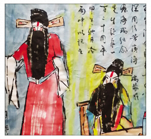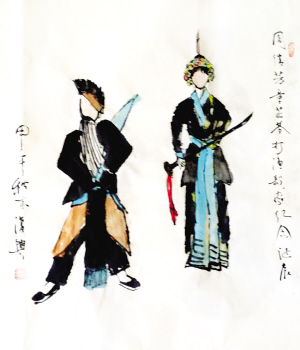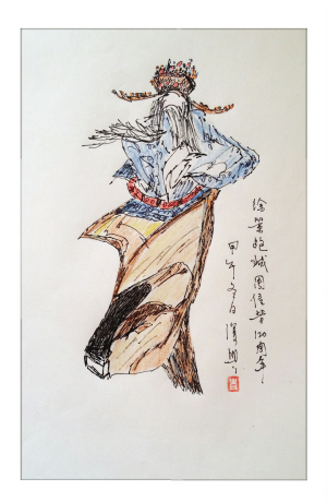 面对自己这三幅拙劣的画作,心里忽然戚然所动,画面上毕竟都是周先生曾经演出过的剧,便恍然觉得上面似乎有周先生的身影浮动,真是感到戏戏如箭穿心,不大好受。