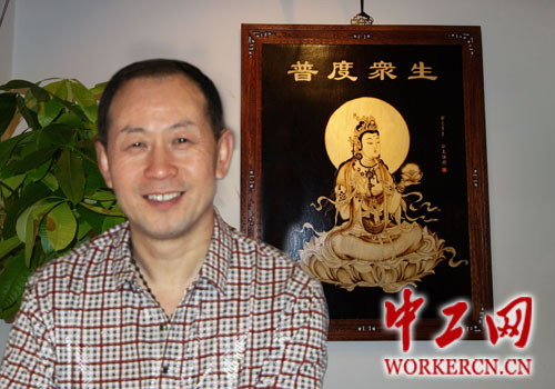 他不善言谈,却把"文化进万家"活动搞得风生水起;他没有受过系统的美术专业教育,却用三年时间以手中的烙铁绘出了我国传世名作《清明上河图》;一名曾经的普通体校教练,将我国烙画的传统技法发扬光大并加以创新,把中国的国画与写意画特点融会贯通,创造出具有油画风格的烙画艺术作品并赋予了烙画艺术时代的生命力。以至一位画界名家评价:"他的烙画作品,山水画中,蕴含着国画的磅礴气势;花鸟图中,表现出工艺画的丝柔细腻;人物风光画中,又赋予了油画高雅隽永的风格。"他就是我国工艺美术师——烙画传承人孙光陆。