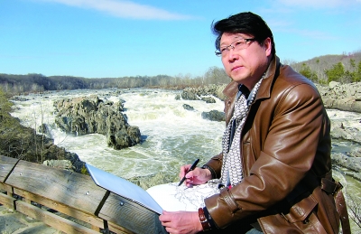 在中国水墨世界中浸淫四十多个春秋、在大洋彼岸守望中华传统文化十八年的穆家善,凝望着自己笔下的那些既熟悉又陌生、既渴望却又不敢相信的景象,他知道,在中国画的悠久历史中,在无数先贤的水墨经典中,这是从来没有出现过的笔墨技法。“千毫皴!焦墨千毫皴!”穆家善不觉自言自语地喊出声来。