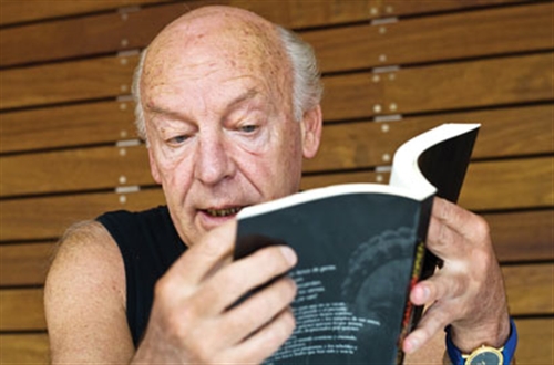 2009年4月3日,加莱亚诺在墨西哥城向前来采访的记者朗读自己的新作《镜子》。