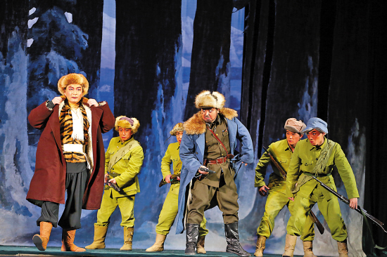 当晚的演出在于魁智、李胜素两位艺术家的名曲《蝶恋》中拉开序幕,随后,在一段锣鼓声中,一身皮装的“杨子荣”出现在白雪皑皑的森林场景中,高亢嘹亮的嗓音将观众拉入危机四伏的威虎山之中。听到杨子荣与座山雕的经典念白“脸红什么?”“精神焕发!”时,观众席爆发出一阵阵的笑声。