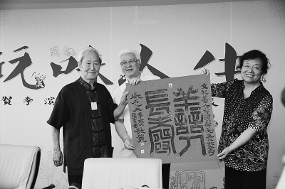 李苦禅之子李燕和夫人孙燕华题字“善人长寿”赠给滨老(左)